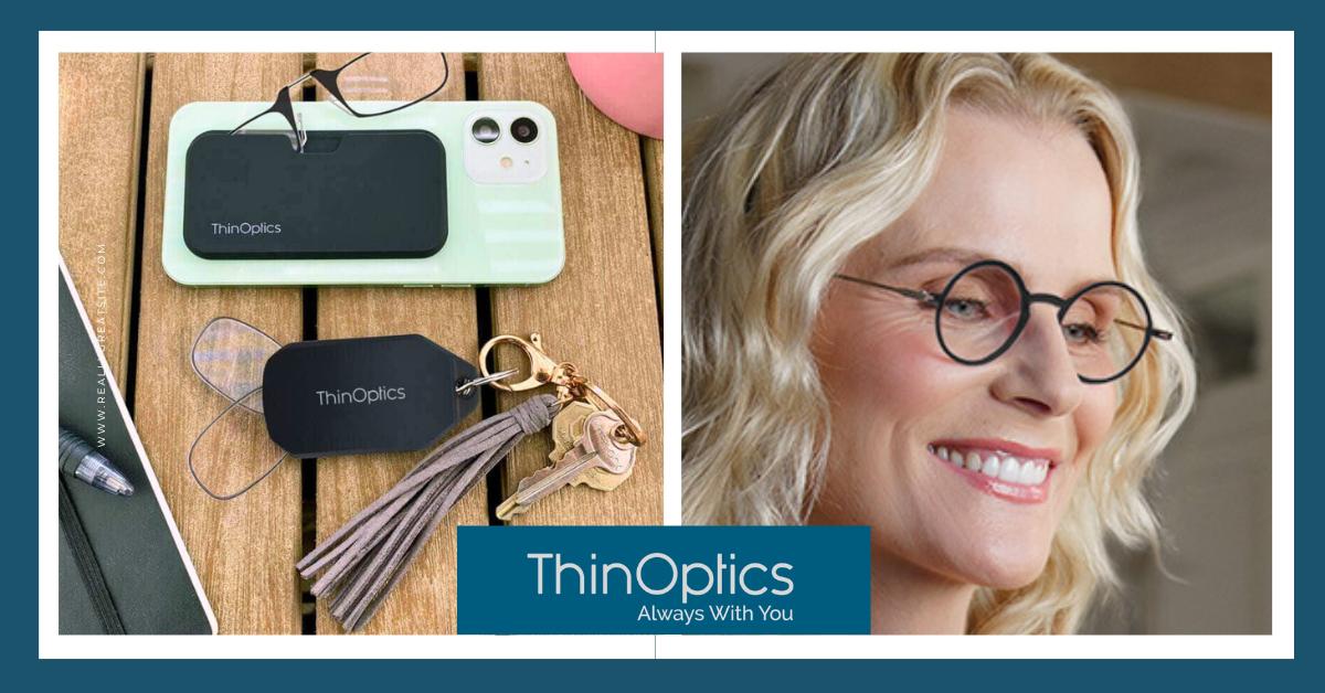 Thinoptics – המותג האמריקאי שמתמחה במשקפי קריאה, משקפי מחשב, משקפי שמש, יציבים ונוחים על האף. עם מוטות או מתקפלים וגמישים בלי מוטות, המתייצבים בהתאם למבנה האף האישי שלך. משקפי הקריאה דקים מאד, עם מגוון רחב של נרתיקים. הם צמודים לסמארטפון, במחזיק המפתחות, בכיס או בארנק ועוד… עם Thinoptics, משקפי הקריאה שלך תמיד אתך! בכל רגע! בכל מקום!
