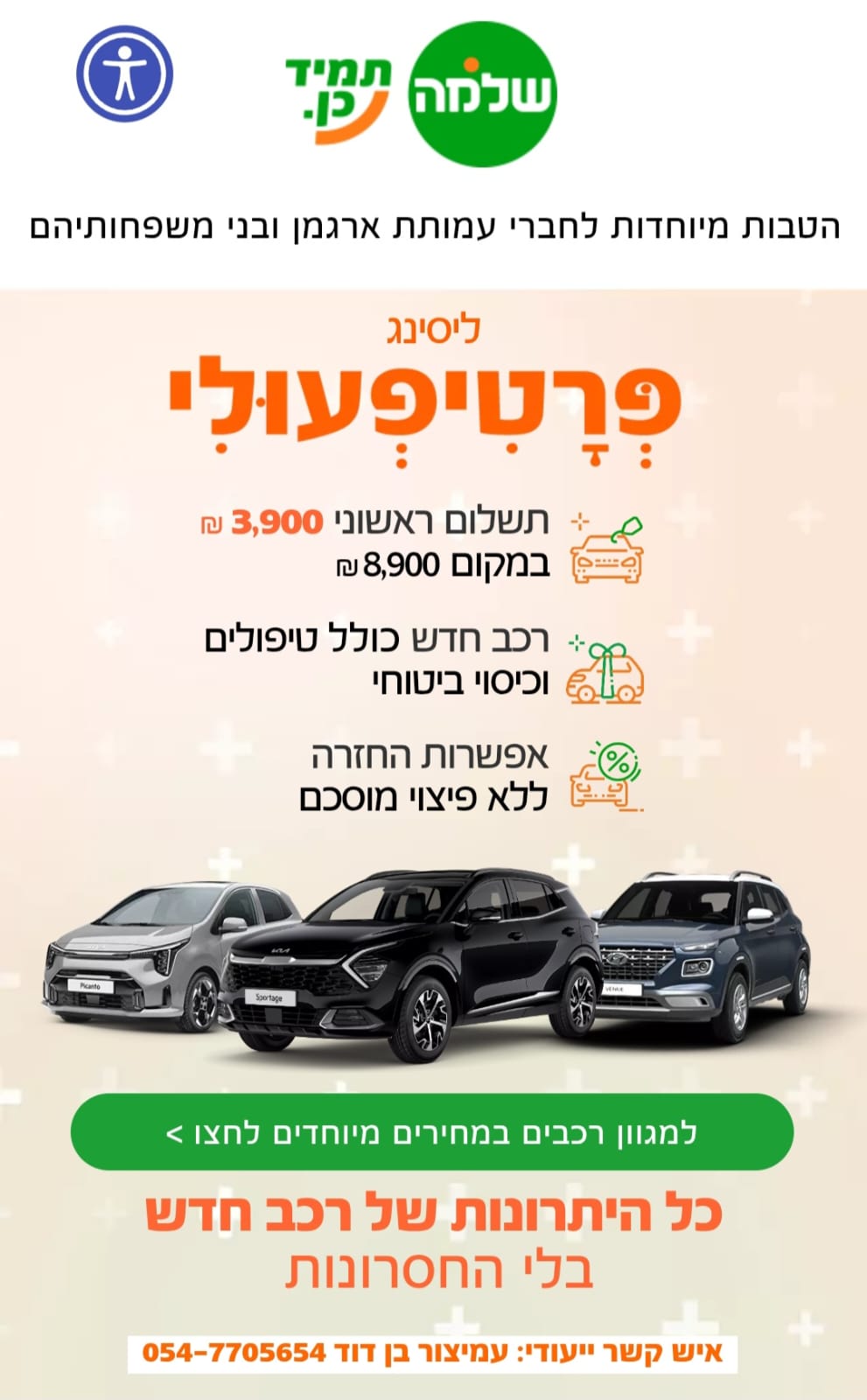 ההסדרים מיועדים לחברי ארגמן ובני ביתם בלבד, אין לשתף ולמסור הפרטים, הסדרים ונתוני הנחות לגורמים אחרים שיעשו בכך שימוש .